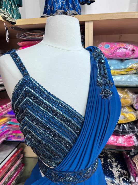 Aegean Blue Pre-Stitched Saree W/ Readymade Blouse PSS-50