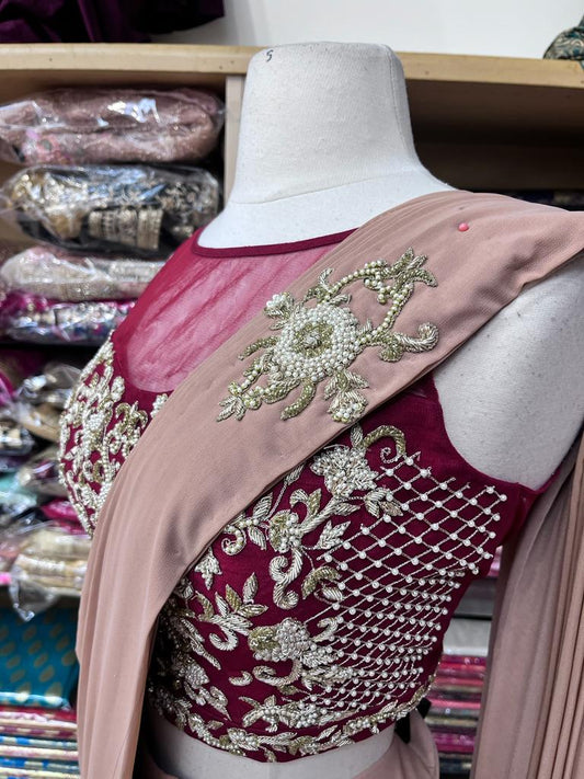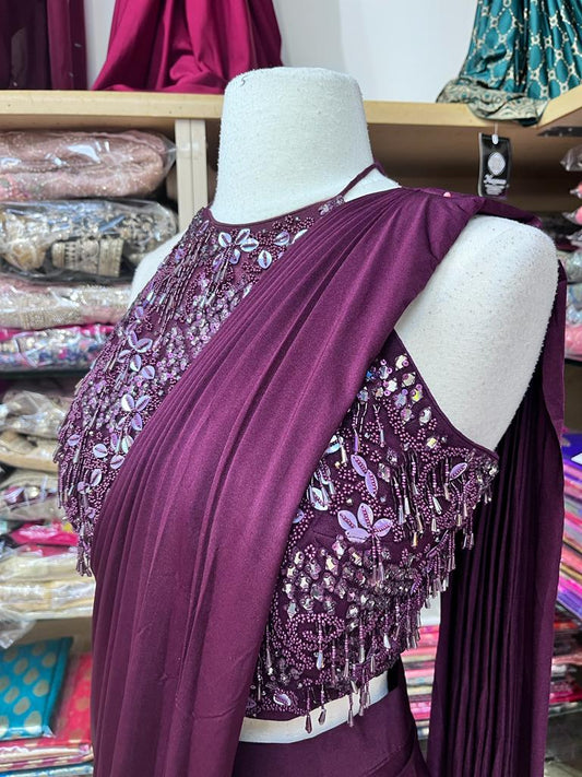 Wine Pre-Stitched Saree W/ Readymade Blouse PSS-45