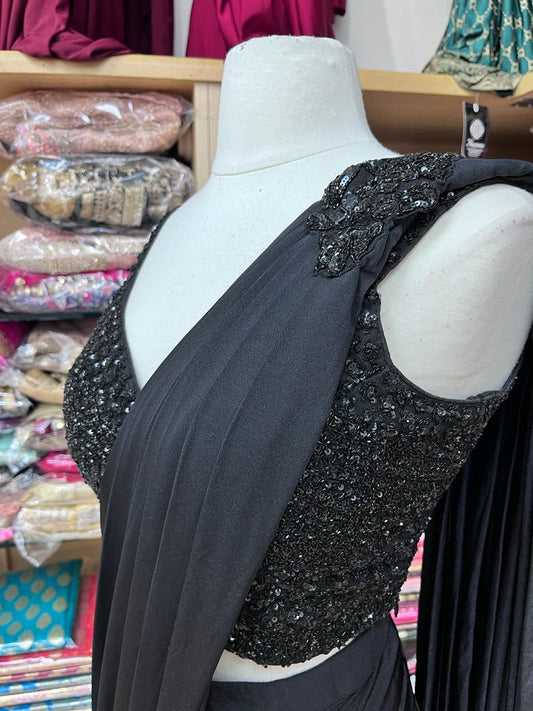 Smoky Black Pre-Stitched Saree W/ Readymade Blouse PSS-37