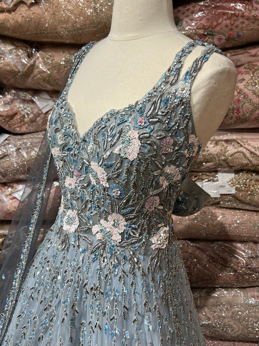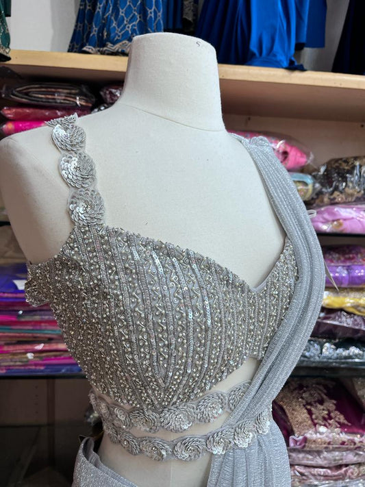 Grey Pre-Stitched Saree W/ Readymade Blouse PSS-46