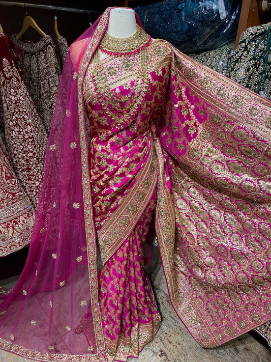 Hot Pink Pure Silk Banarasi Bridal Saree BBS-029