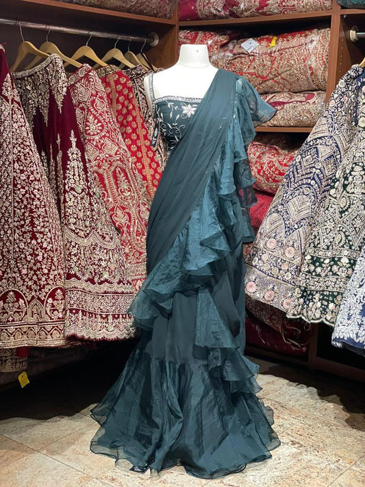 Teal Green Pre-Stitched Saree W/ Readymade Blouse PSS-42