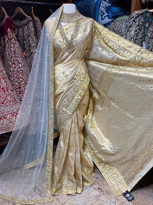 Grand Golden Pure Silk Banarasi Bridal Saree BBS-030