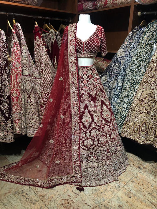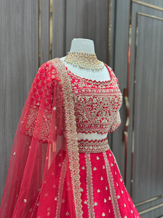Sold outCherry Red Bridal Lehenga BL- 312
