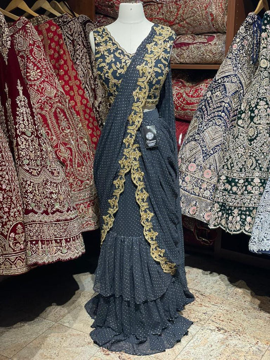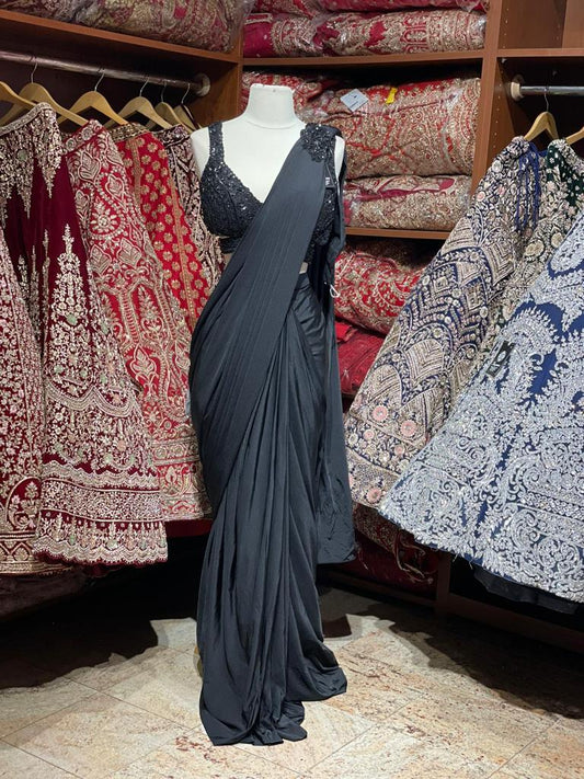 Smoky Black Pre-Stitched Saree W/ Readymade Blouse PSS-37