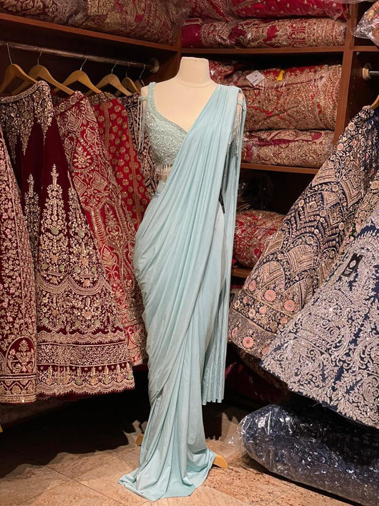 Powder Blue Pre-Stitched Saree W/ Readymade Blouse PSS-41