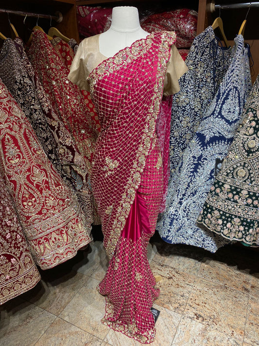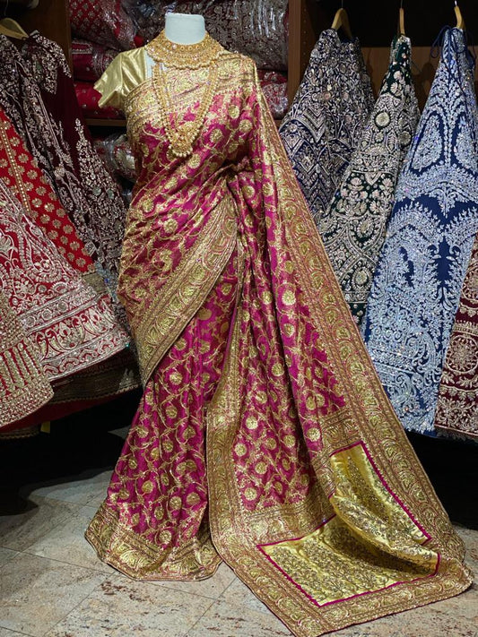 Rough Pink Pure Silk Banarasi Bridal Saree BBS-022