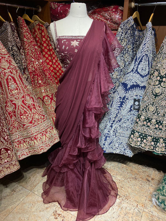 Rosewood Red Pre-Stitched Saree W/ Readymade Blouse PSS-33