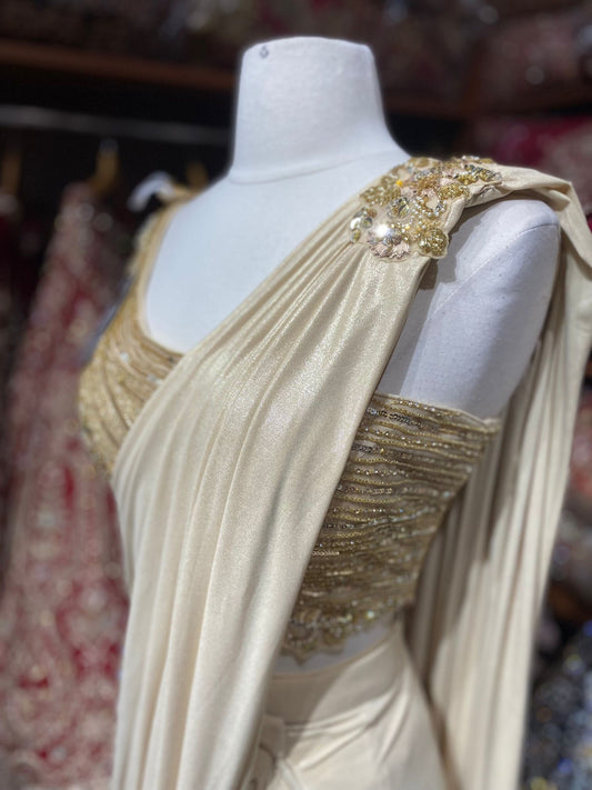 Shimmering Gold Pre-Stitched Saree W/ Readymade Blouse PSS-32