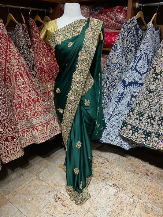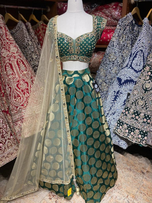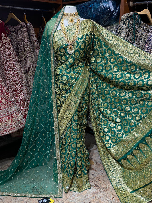 Emerald Green Pure Silk Banarasi Bridal Saree BBS-023