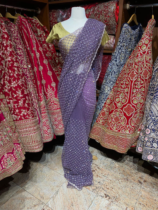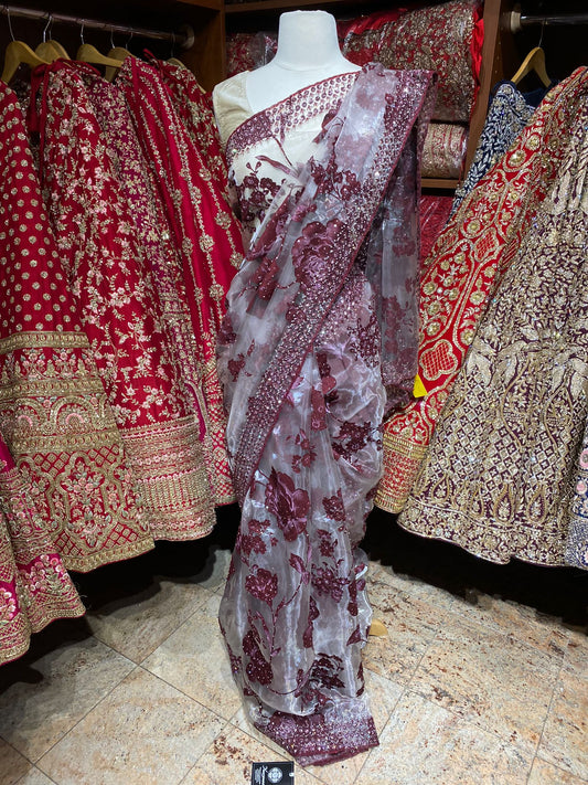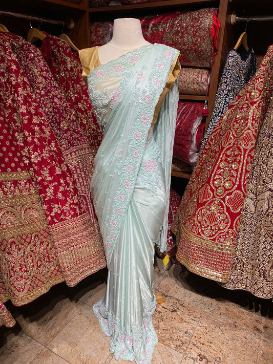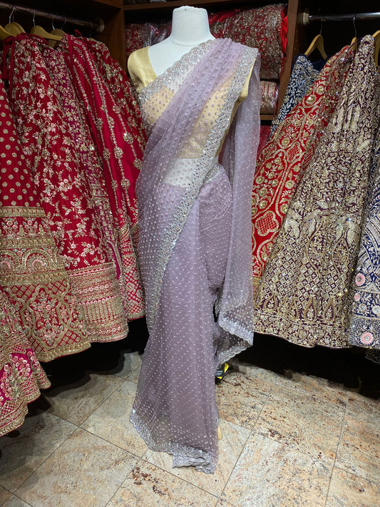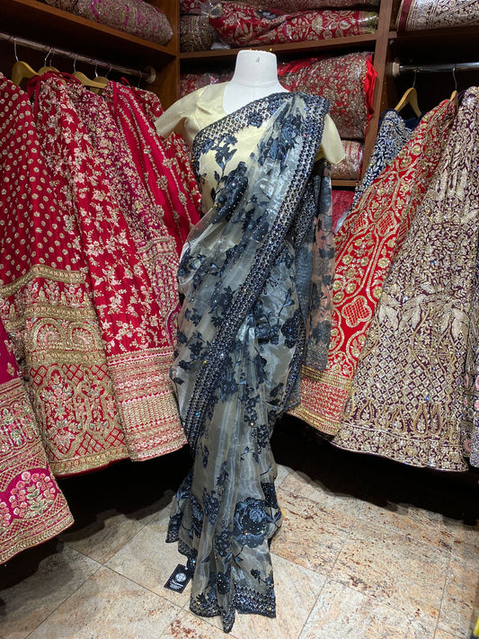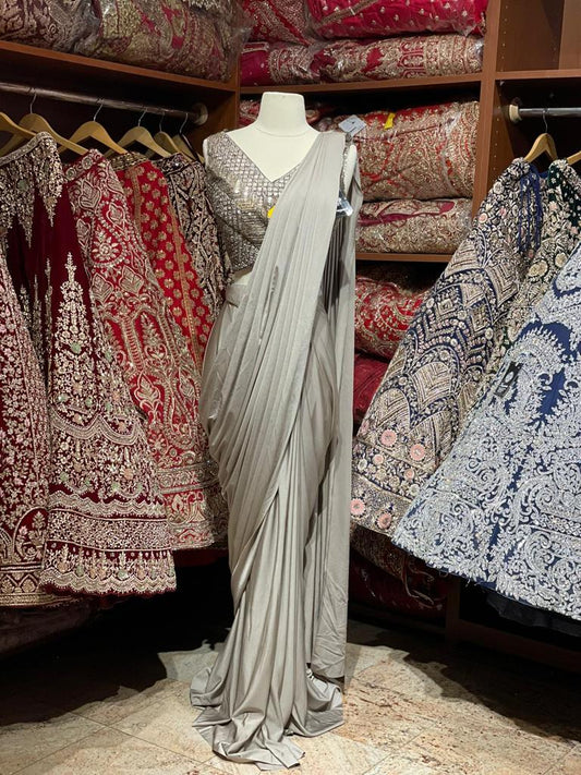 Platinum Silver Pre-Stitched Saree W/ Readymade Blouse PSS-31
