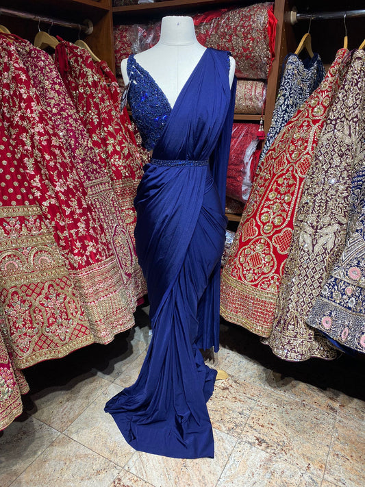 Royal Blue Pre-Stitched Saree W/ Readymade Blouse PSS-30