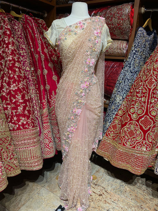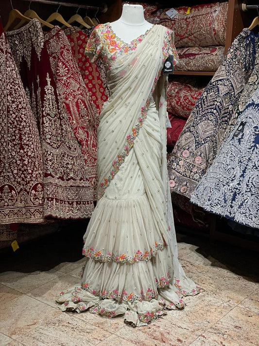 Snow White Pre-Stitched Saree W/ Readymade Blouse PSS-29