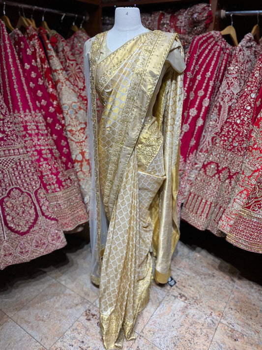 Grand Golden Pure Silk Banarasi Bridal Saree BBS-019