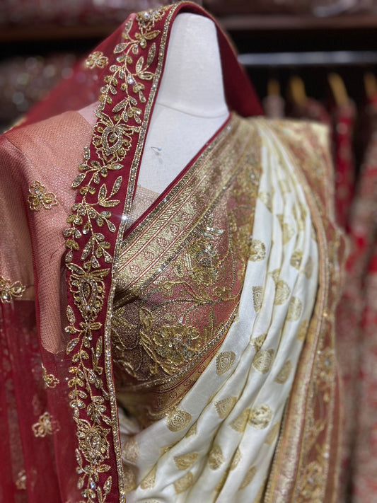 Ivory Cream Pure Silk Banarasi Bridal Saree BBS-020