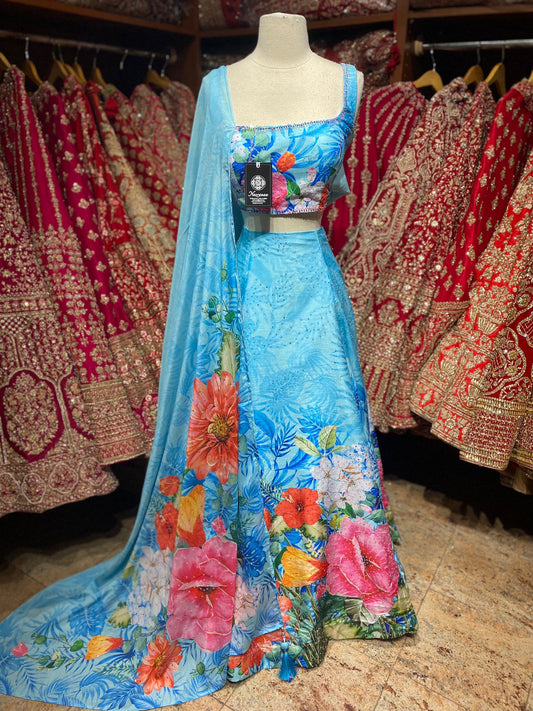 Powder Blue New Era Party Wear Lacha Collection - D002