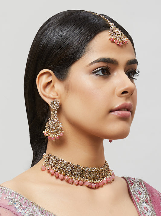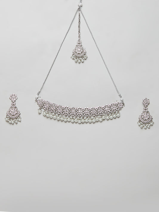 Stone Work Necklace Set W/Earrings & Mang Tikka NSD3