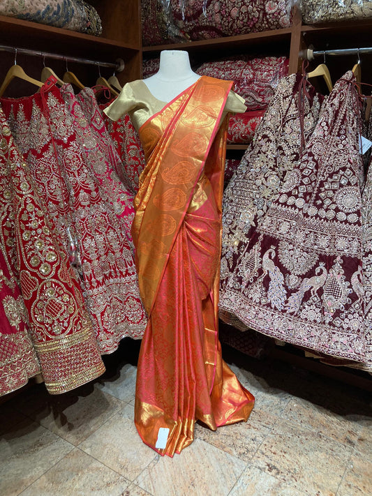 Tangerine Orange Pure Silk Kanjeevaram Saree PSK-019