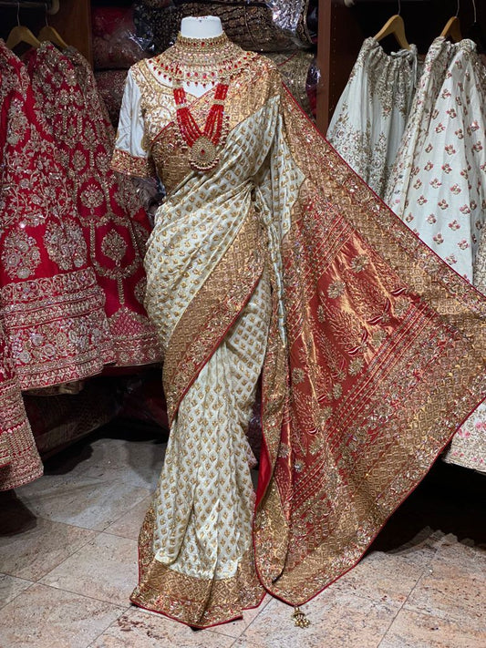 Ivory with Red Pure Silk Banarasi Bridal Saree BBS-011