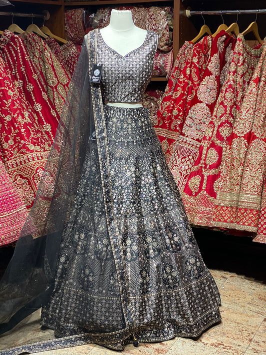 Charcoal Grey Digital Print New Era Party Wear Collection PWL-204