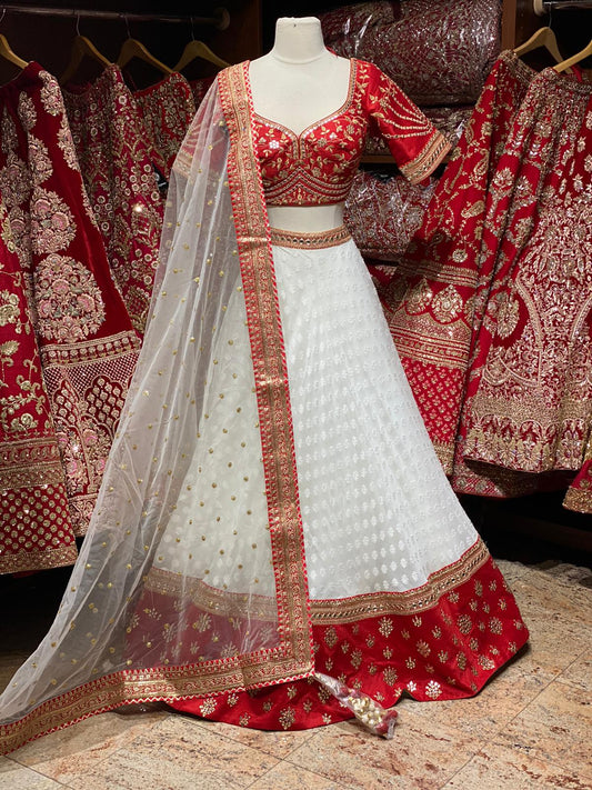 Exclusive Red & White Party Wear Lehenga PWL-084