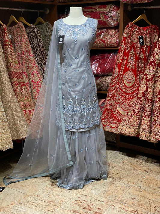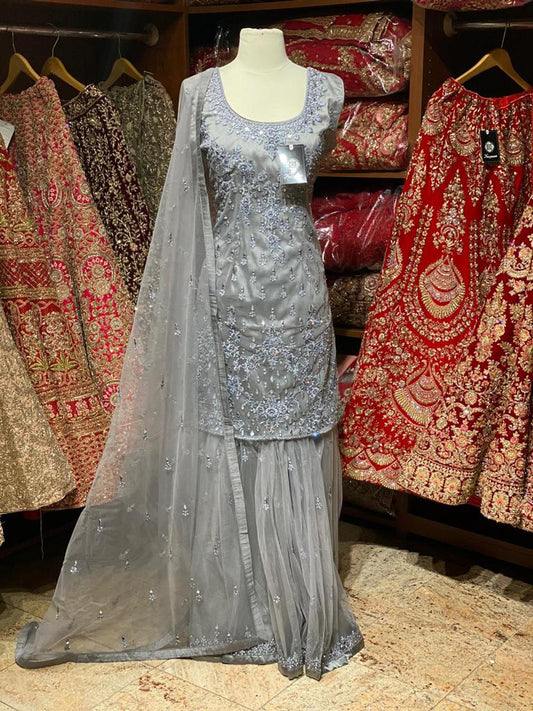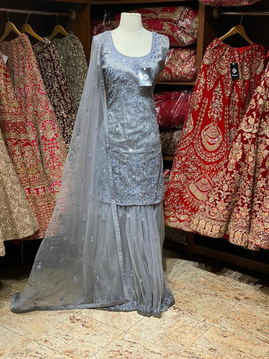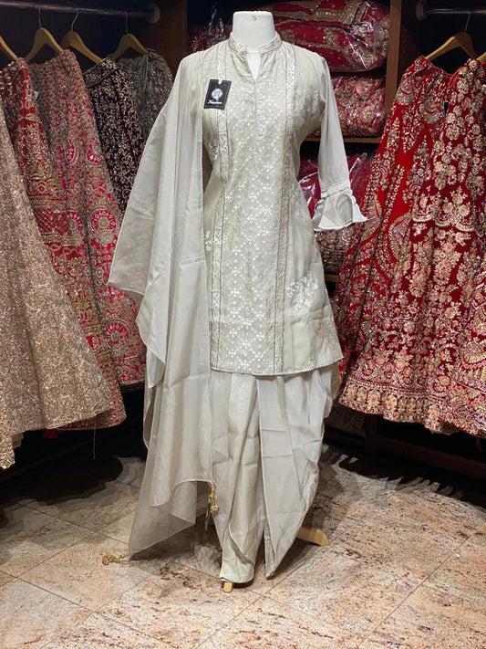 Shiny Silver and Grey Dhoti Party Wear Suit Collection PWS-043