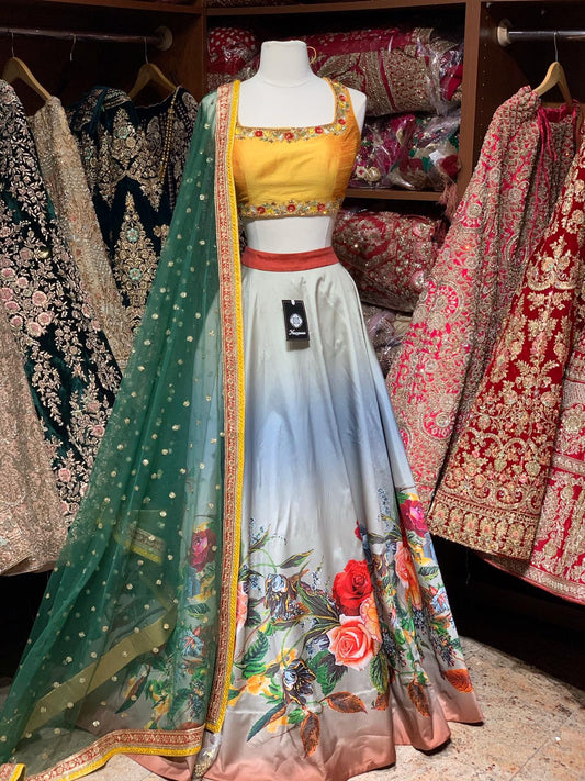 Yellow & Grey Digital Printed Party Wear Lehenga PWL-075