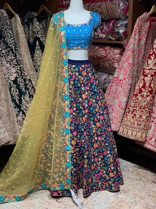 Navy Blue Floral Party Wear Lehenga PWL-071