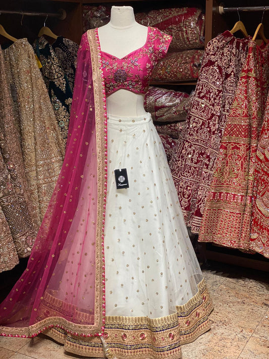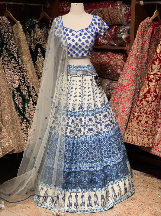 Elegant White & Blue Party Wear Lehenga PWL-073
