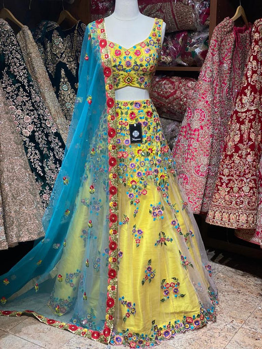 Multicolor Yellow Floral Party Wear Lehenga PWL-064