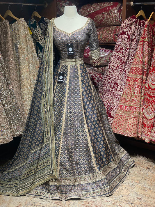 Charcoal Grey 3D Print Party Wear Lehenga PWL-063