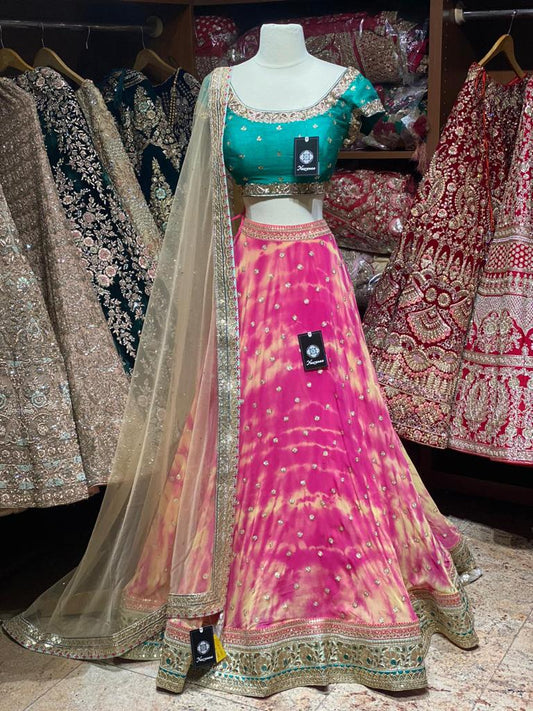 Hot Pink & Peach Tie n Dye Party Wear Lehenga PWL-066