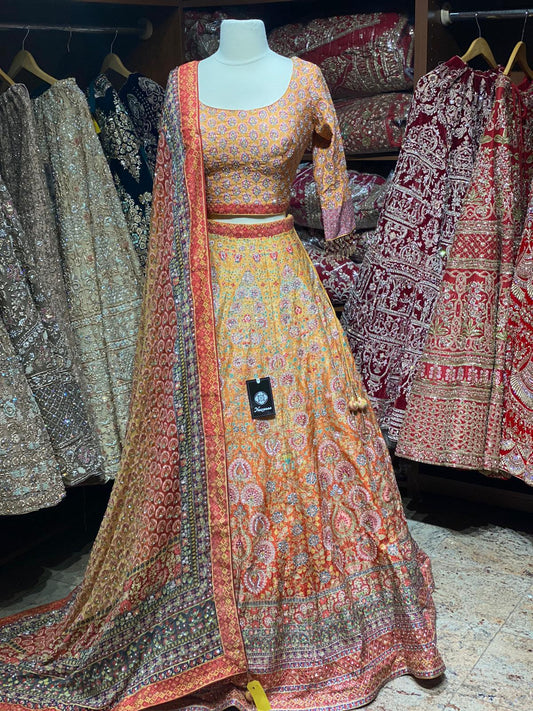Orange & Yellow Stunning Ombre Party Wear Lehenga PWL-051