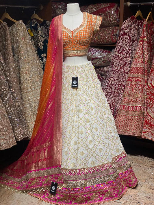 Dark Cream Tie & Dye Party Wear Lehenga PWL-057
