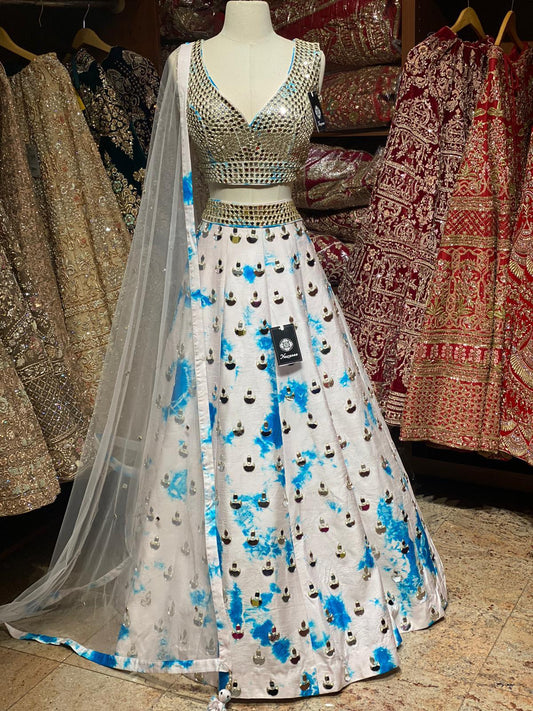 Tie n Dye Blue White Party Wear Lehenga PWL-058