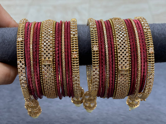 Indian Rose Gold Cubic Zirconia Bangle Set W/ Droppings