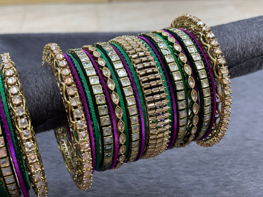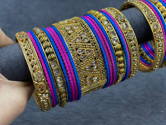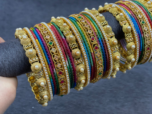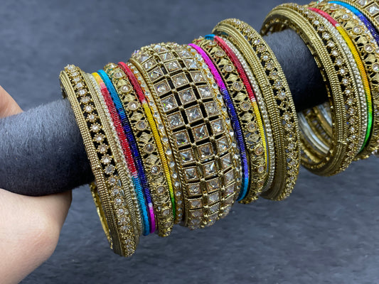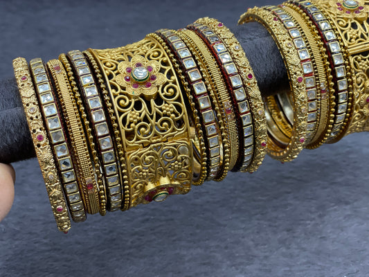 Antique Gold Bangle Set with Kundan Bangles, Size 2.6