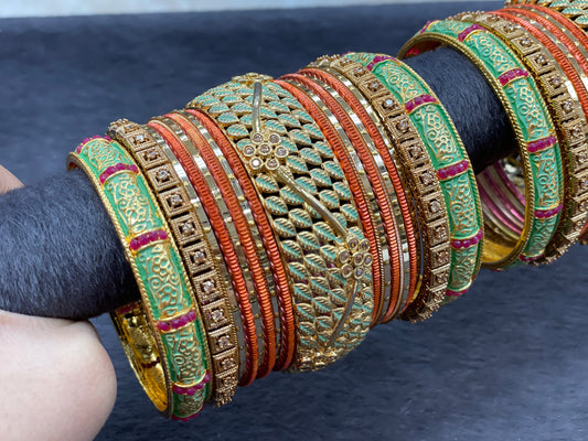 Indian Antique Gold Bangle Set, Size 2.6