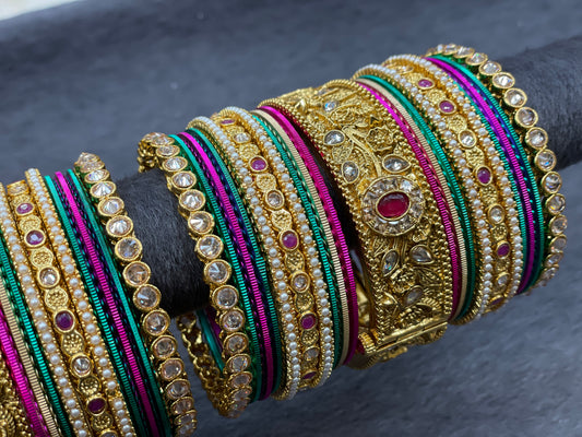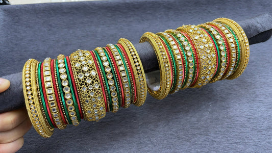 Traditional Gold Bangle Set with Kundan Kadas, ,Size 2.6