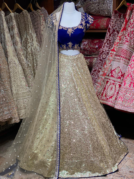 Sparkle Gold and Royal Blue Party Wear Lehenga PWL-028