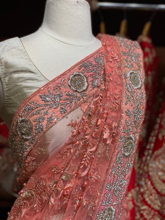 Sold outPeach Net Saree PWS-004