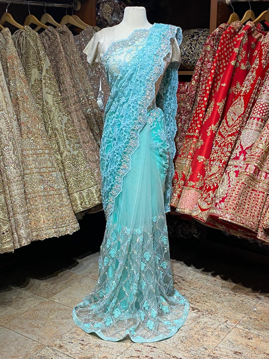 Sold outArctic Blue Net Saree PWS-005