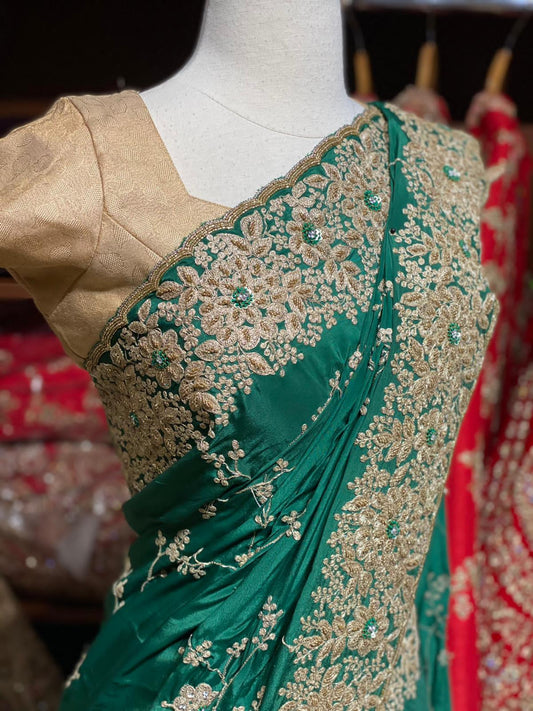 Sold outViridian Green Crepe Saree PWS-016