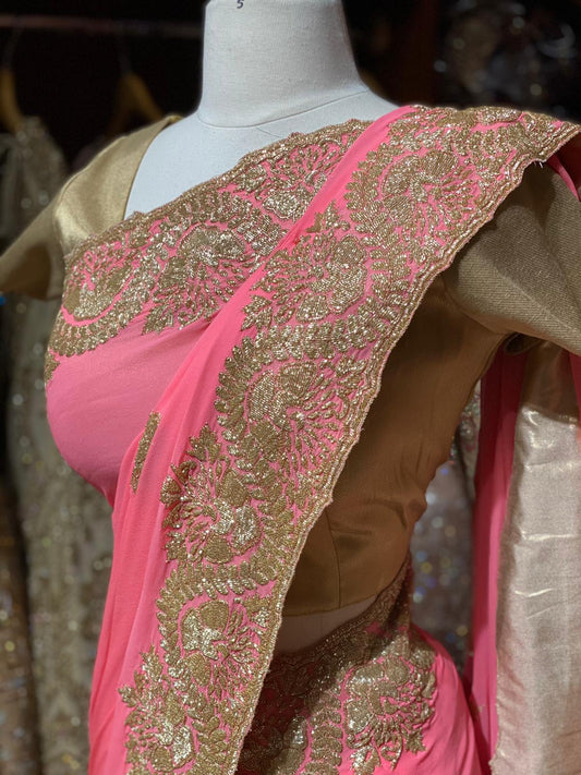 Sold outNeon Pink Georgette Saree PWS-010