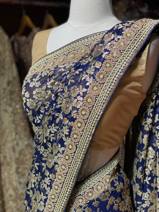 Sold outRoyal Blue Georgette Saree PWS-018