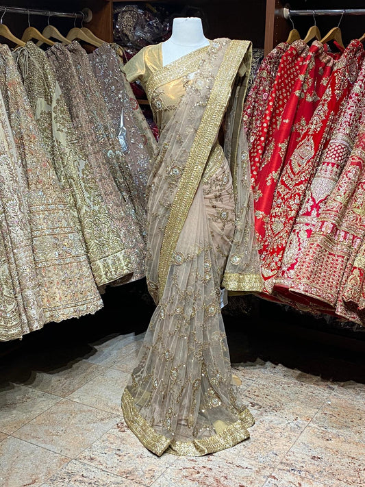 Sold outGolden Brown Net Saree PWS-003