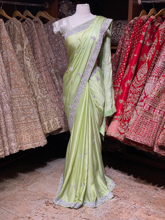 Sold outMint Green Satin Silk Saree PWS-022