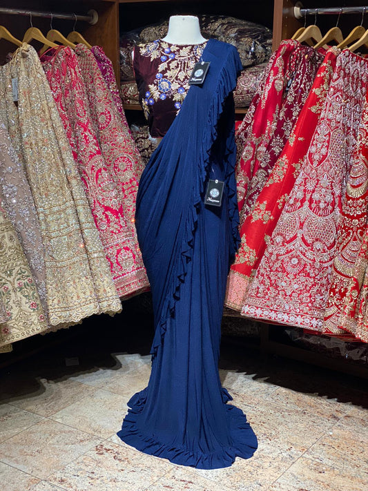 Navy Blue Pre-Stitched Saree W/ Readymade Blouse PSS-1