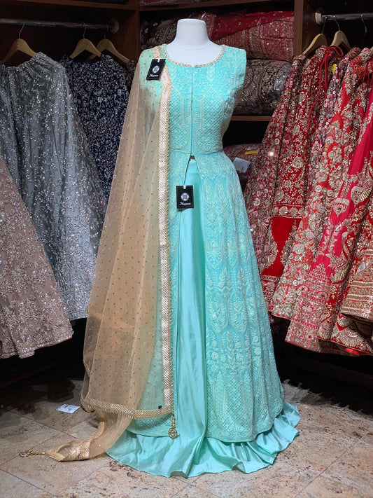 Sage Green Cocktail Party Wear Lehenga Size 38
