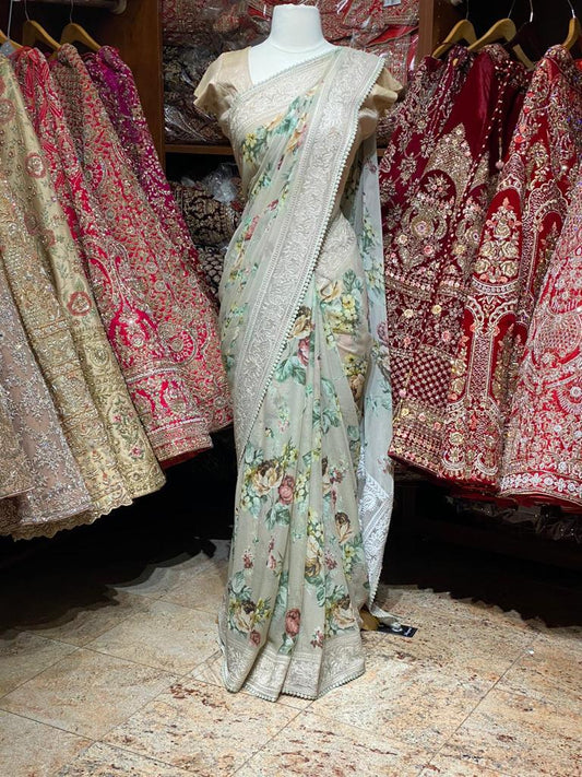 Sold outCream Georgette Saree